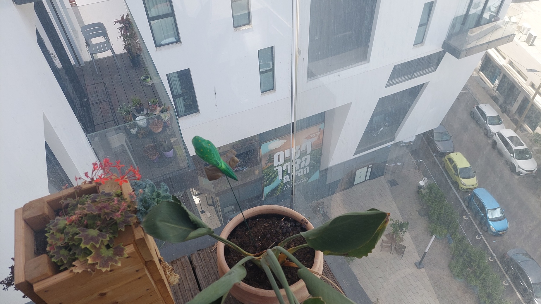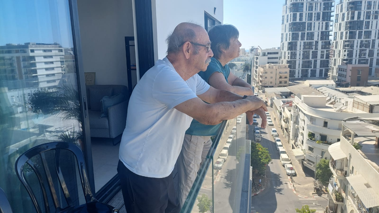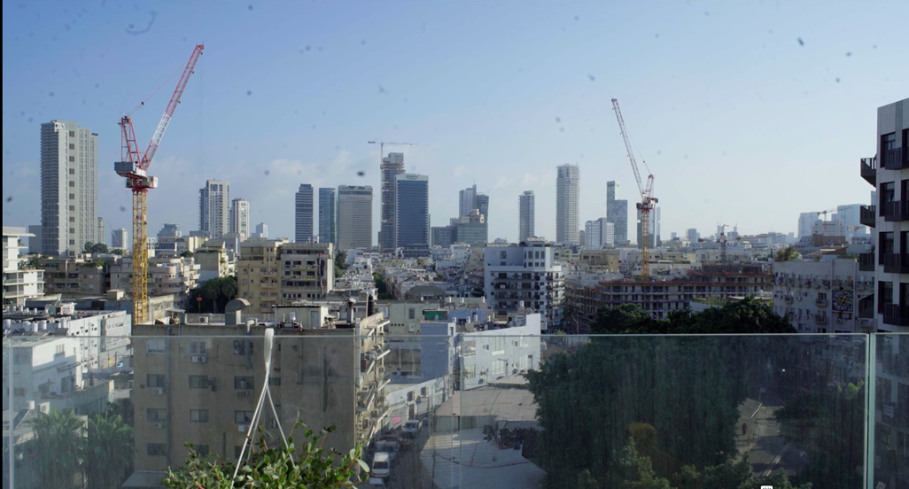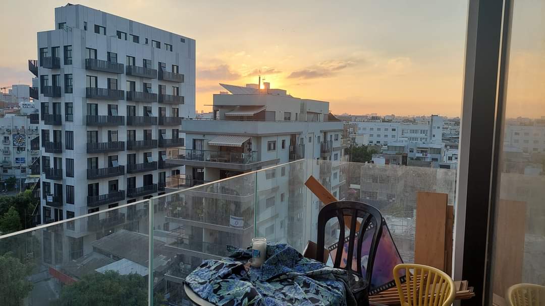 90  קילומטרים מקיבוץ רעים, על מרפסת הבית הזמני שלי בתל אביב,
